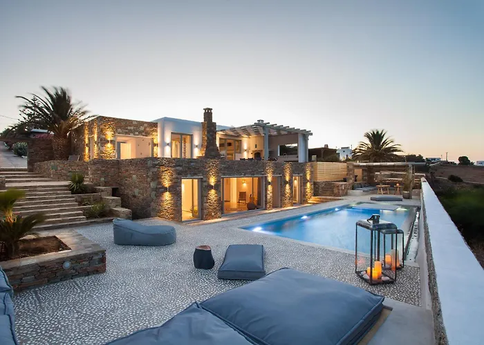 Among the top dining spots near the villa are seafood restaurant Petrino Aquarius, renowned for its Greek dishes, and wine bar Salty Houses Pool Restaurant, known for its expertise in Greek.